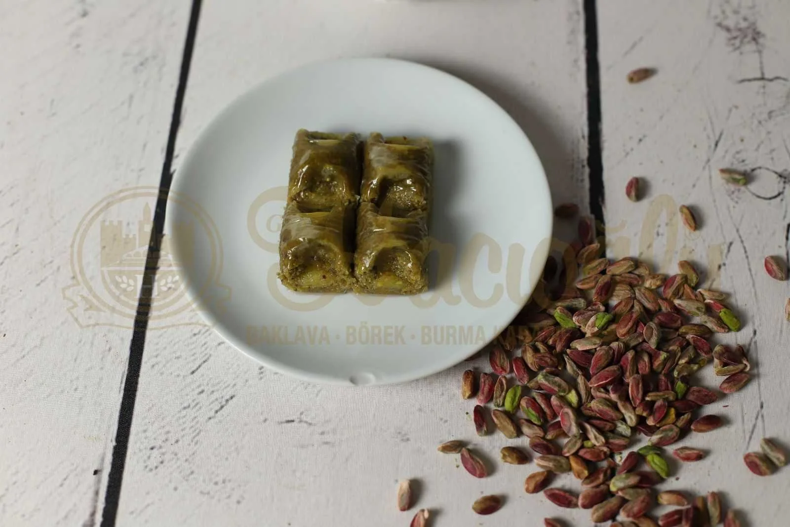 Fıstıklı cimcik baklava, incecik açılan el yapımı hamurun özel büzgü formunda şekillendirilmesi ve bol Antep fıstığı ile doldurulmasıyla hazırlanır. Kat kat yapısı ve yoğun fıstık oranı sayesinde hem çıtır hem aroması güçlü bir lezzet sunar. Doğal tereyağı ve dengeli şerbet kullanır, tatlıyı hafif ve akışkan kıvamda hazırlarız. Ürünü günlük taze üretir, sipariş sonrası özenle satışa çıkarırız.