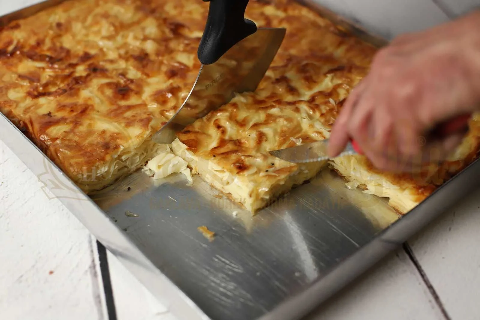 Su böreği, elde açılan ince hamurların tek tek haşlanması ve kat kat yerleştirilmesiyle hazırlanan geleneksel bir lezzettir. Ustalarımız hamuru günlük olarak açar, her katı özenle dizer ve iç dolgusunu dengeli şekilde dağıtır. Doğal tereyağı ile pişirir, dışı hafif kızarmış, içi ise yumuşak ve katmanlı bir doku elde ederiz. Ürünü günlük taze üretir, sipariş sonrası sıcak ve taze olarak hazırlarız.